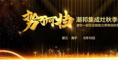 9月19日,潮邦集成灶勢不可擋招商大會在浙江海寧凱元大酒店隆重召開!來自全國各地的賓客們匯聚于此,共商未來,開啟全新的品牌戰略