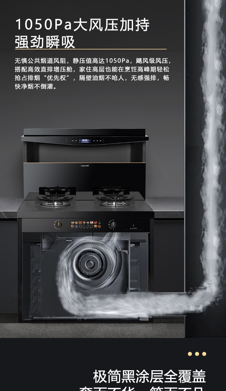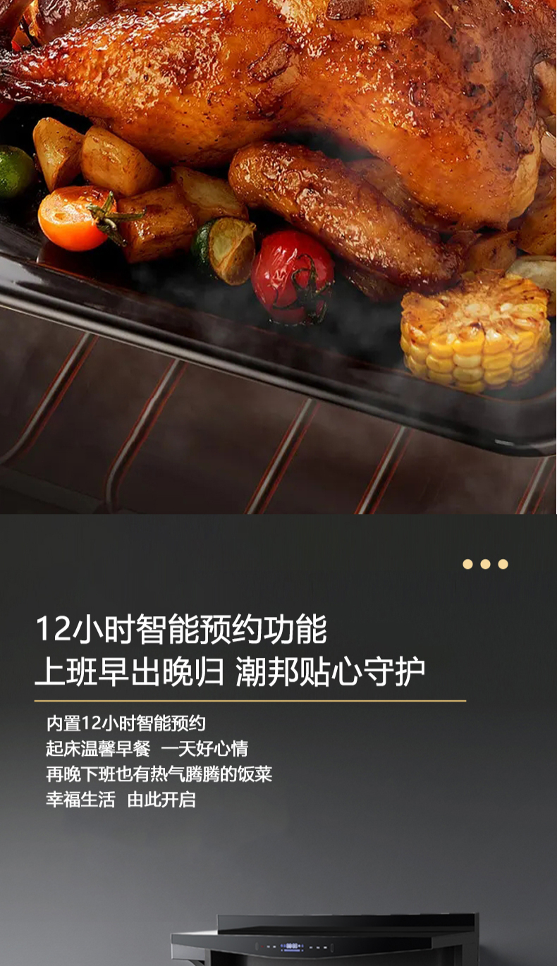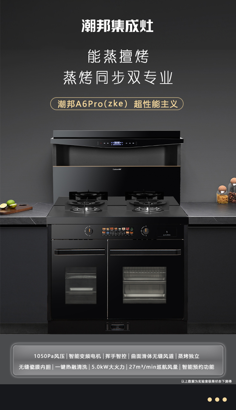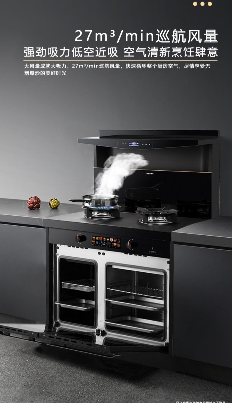 蒸烤同步|1050Pa風(fēng)壓|智能變頻電機|揮手智控|曲面滑體無縫風(fēng)道|無縫瓷膜內(nèi)膽|一鍵熱融清洗|5 0kW大火力| 27m3 min巡航風(fēng)量| 智能預(yù)約功能
