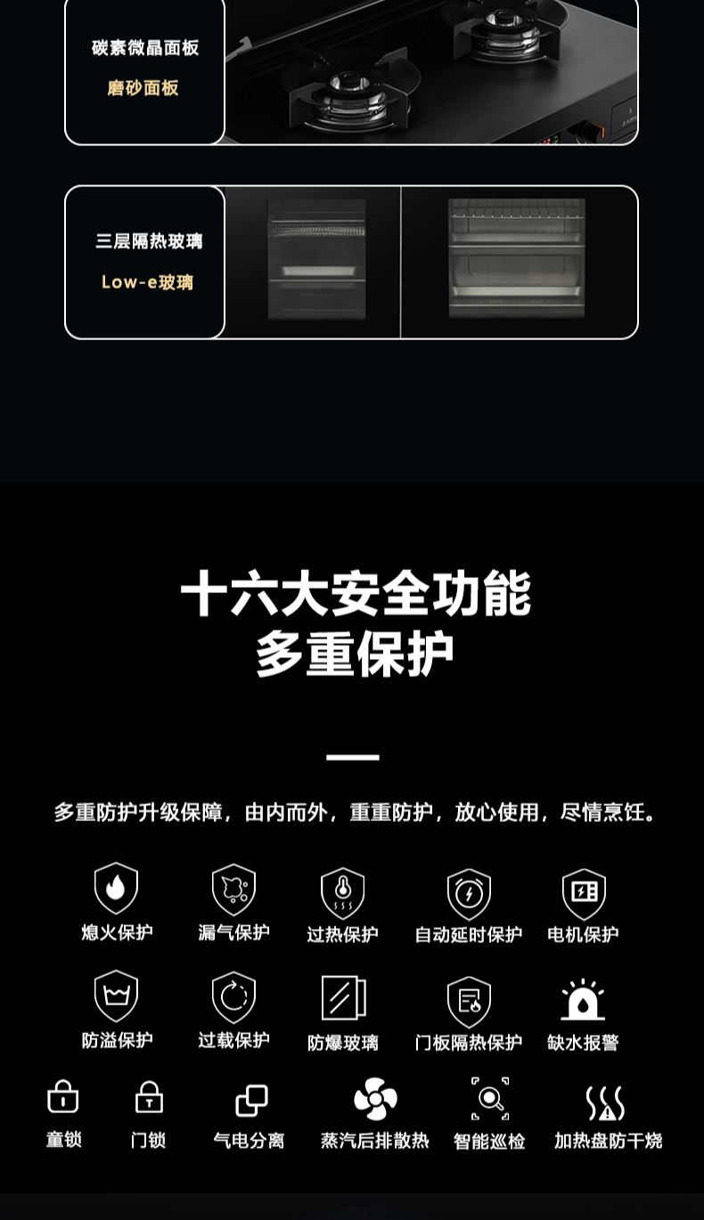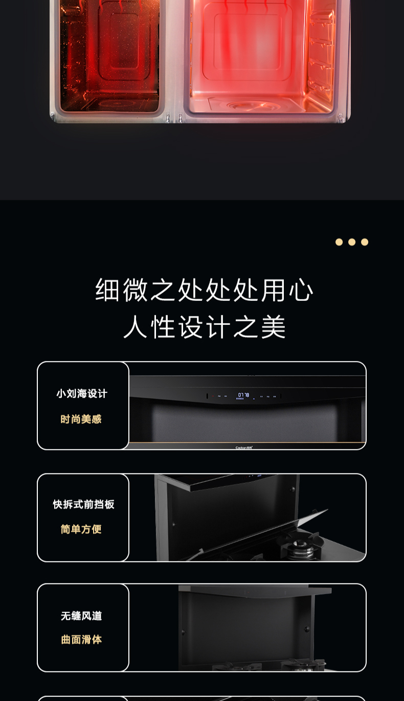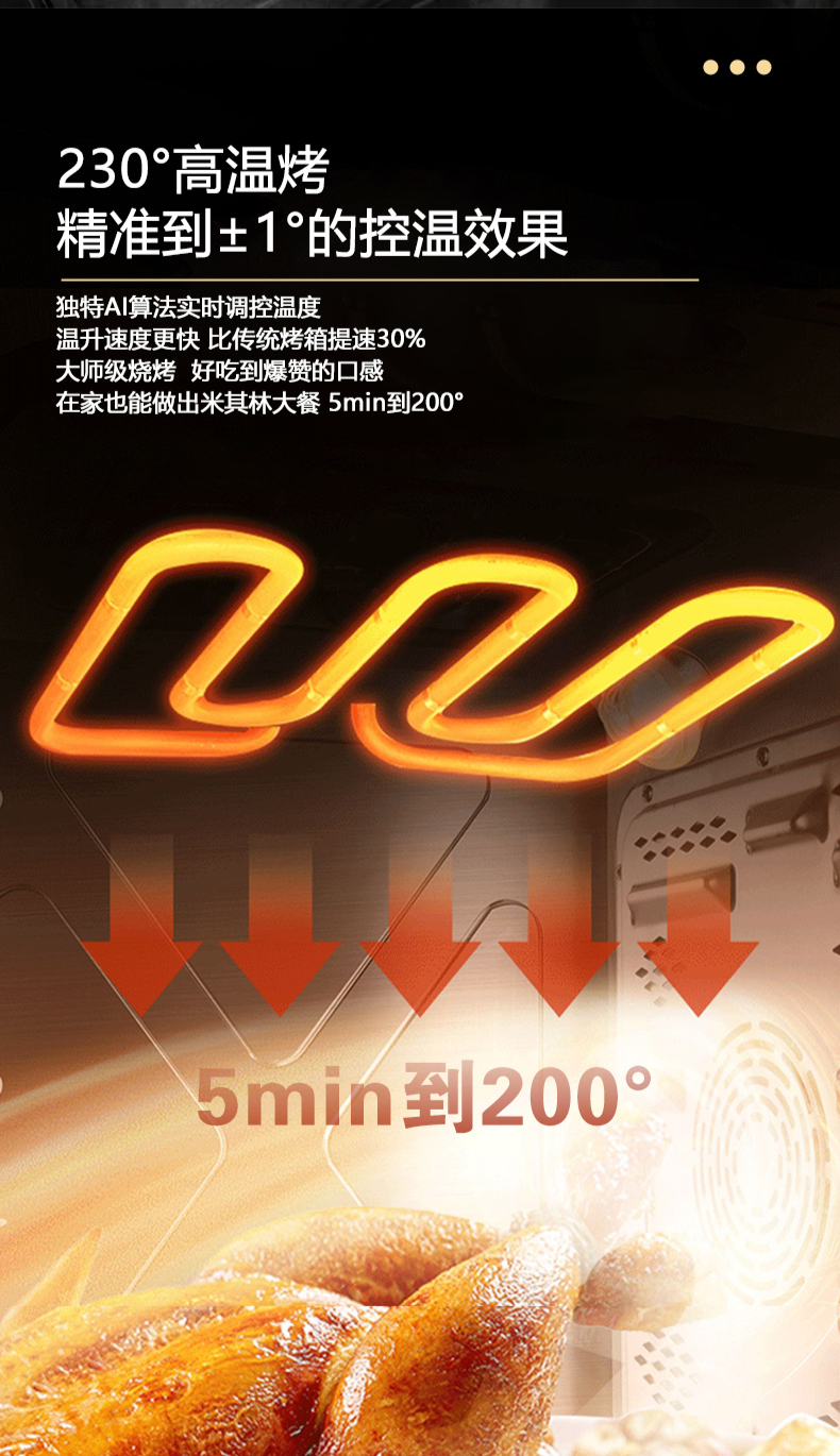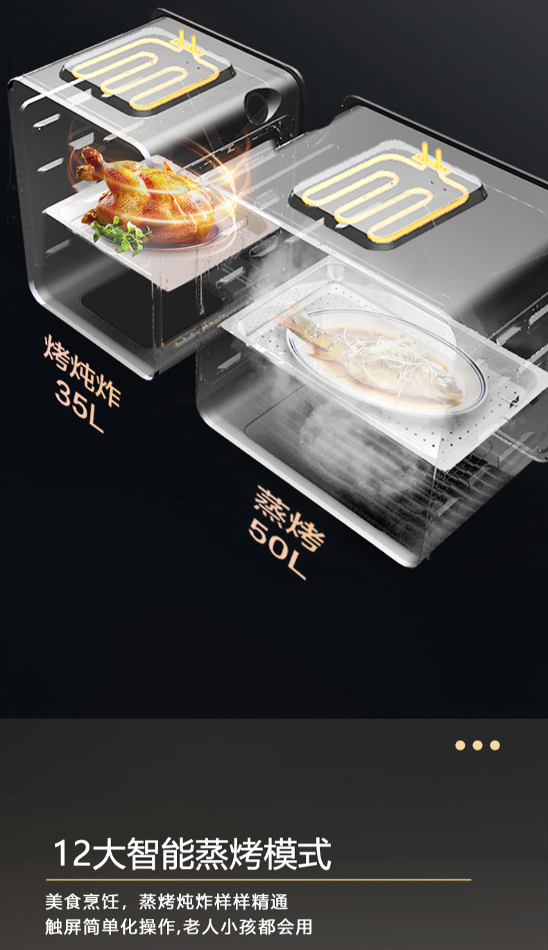 蒸烤同步|1050Pa風(fēng)壓|智能變頻電機|揮手智控|曲面滑體無縫風(fēng)道|無縫瓷膜內(nèi)膽|一鍵熱融清洗|5 0kW大火力| 27m3 min巡航風(fēng)量| 智能預(yù)約功能