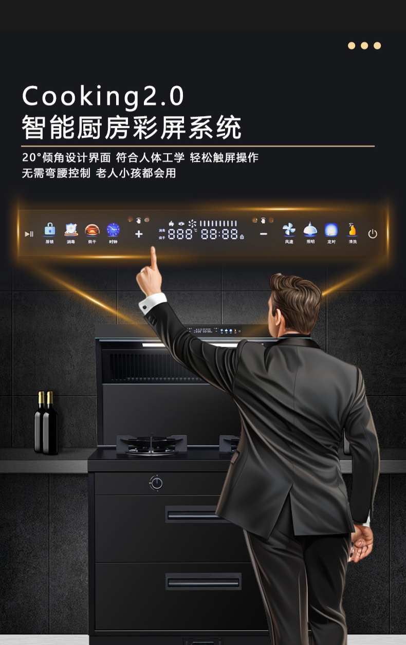 廚房七合一,26方超大巡航風(fēng)量,雙核驅(qū)動(dòng)變頻控制,5kW大火力,揮手智控,電熱自清潔