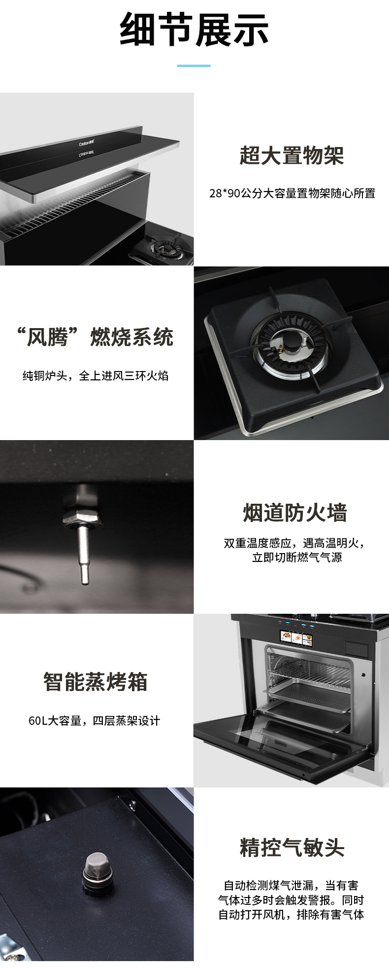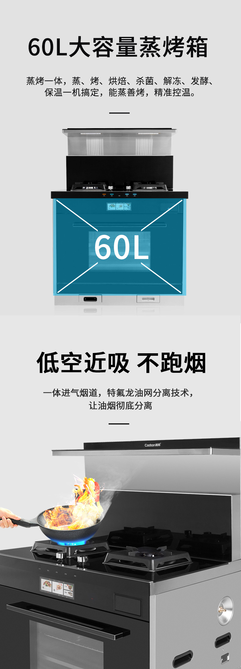 智能蒸烤消一體集成灶,一臺頂五臺。