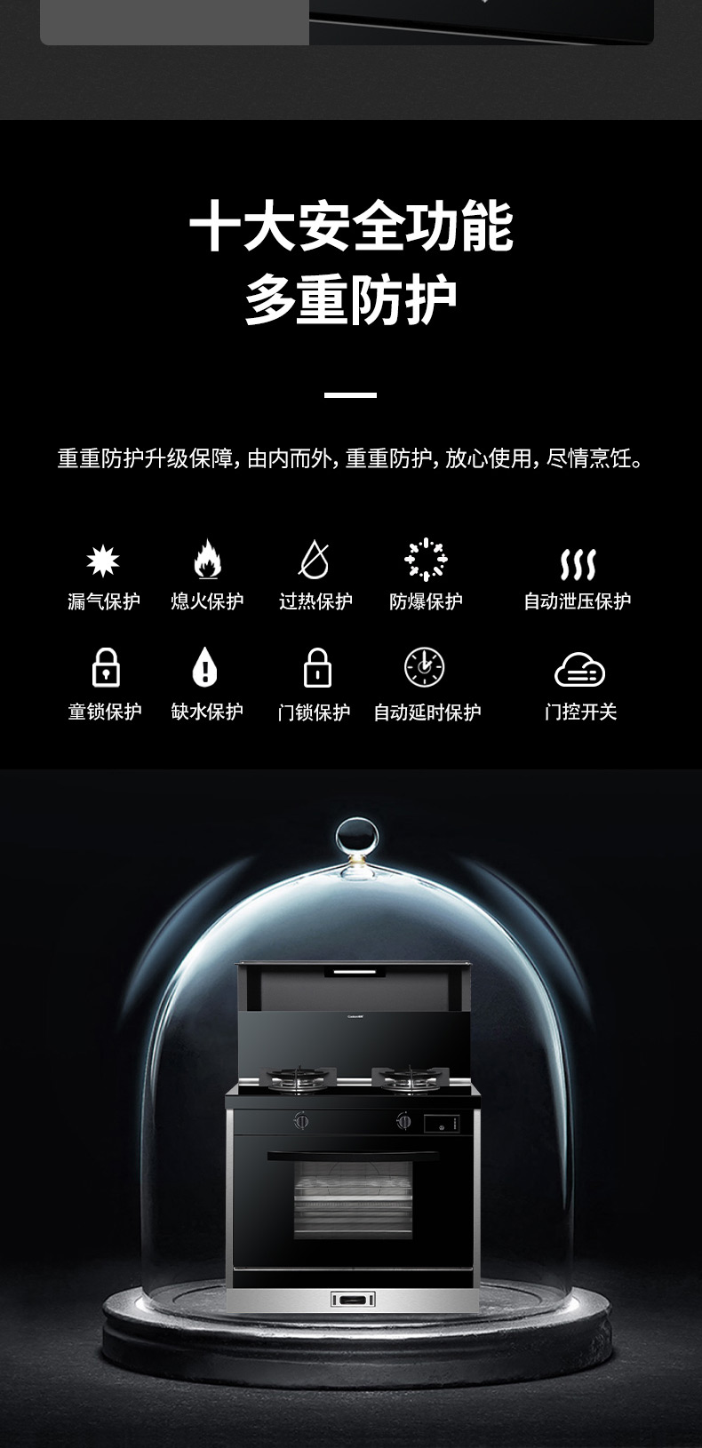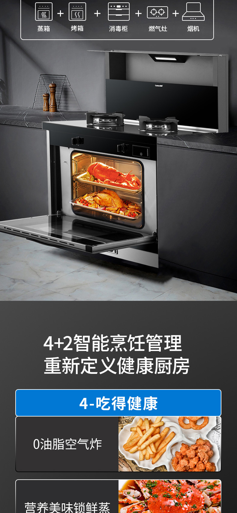 集成科技五合一,60L大容量蒸烤箱,蒸烤炸一體,臺面觸控省時省力