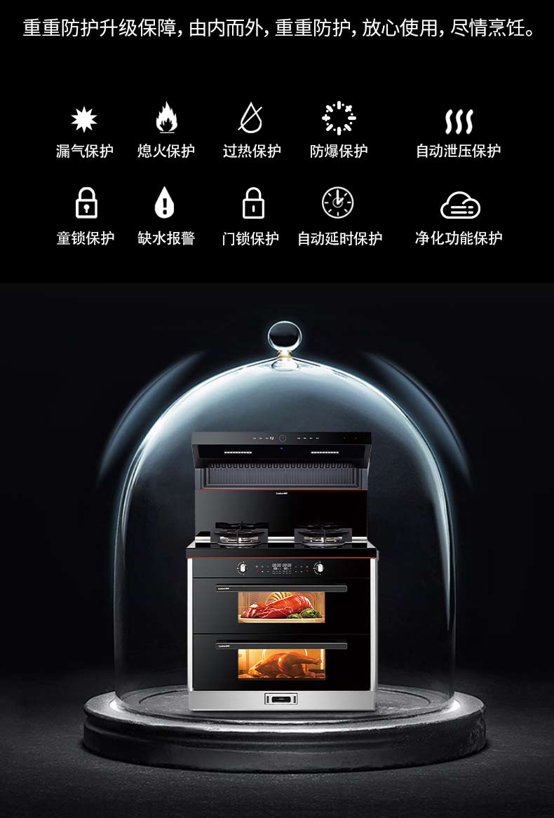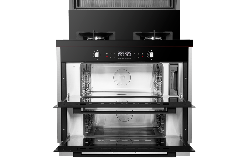 上蒸下烤,蒸烤獨立。智能控制,寬體瓷膜內膽。