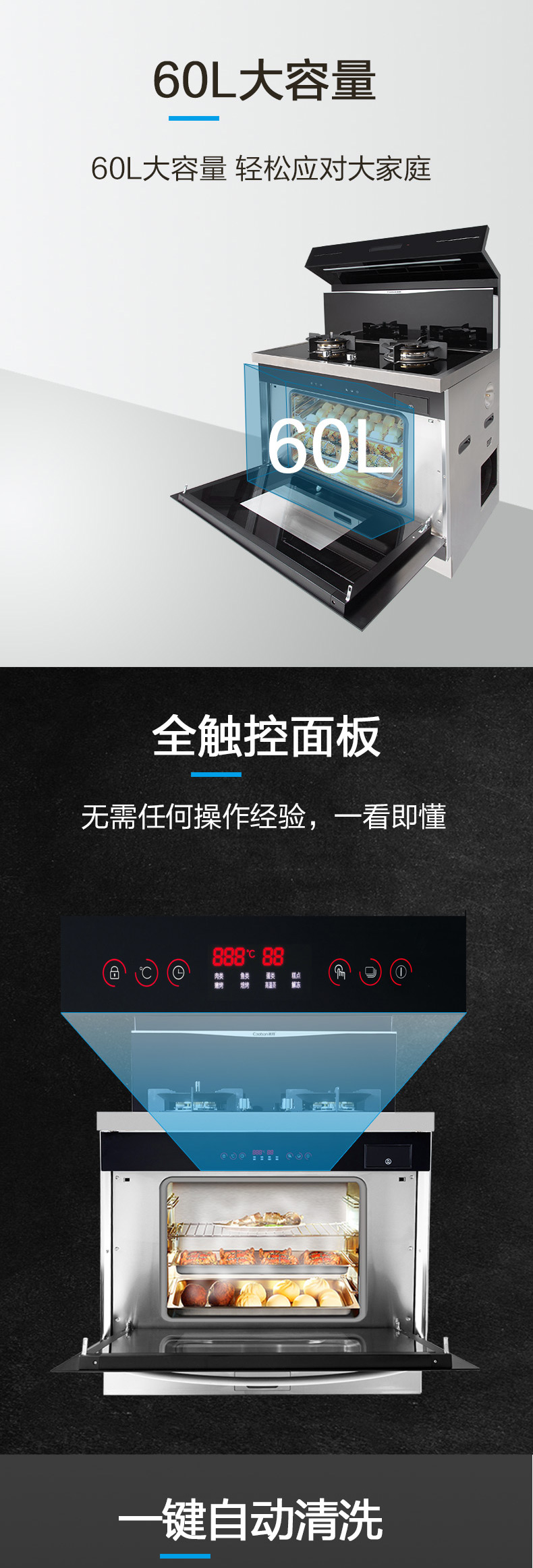 全能大師·蒸烤一體。4 8kW大火力,60%熱效率。