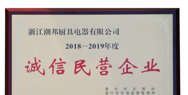 近日,浙江潮邦廚具電器有限公司獲得浙江省嘉興市2018~2019年度誠信民營企業(yè)、海寧市2019年度誠信民營企業(yè)榮譽證書。 獲此殊榮